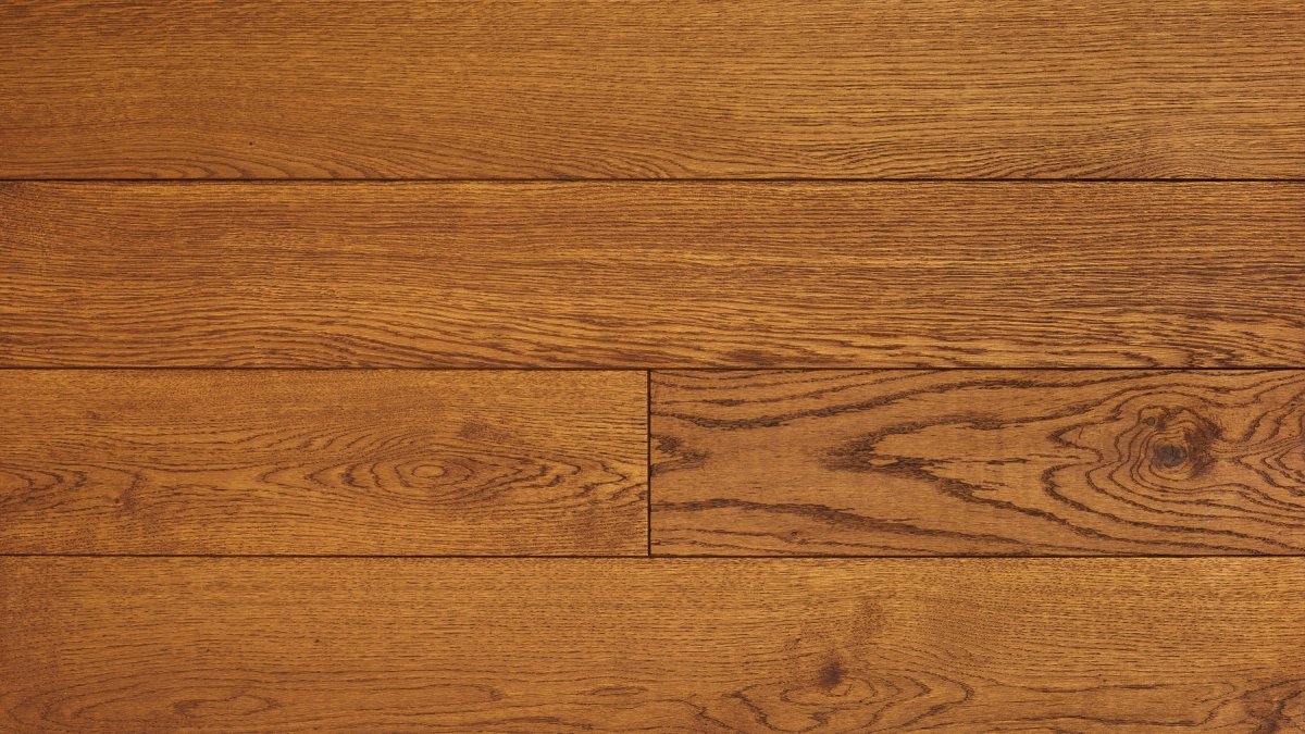 Dąb barwiony olejowoskami w tonacji koniaku w kolorze ciepłego brązu. Delikatnie podkreślone usłojenie.