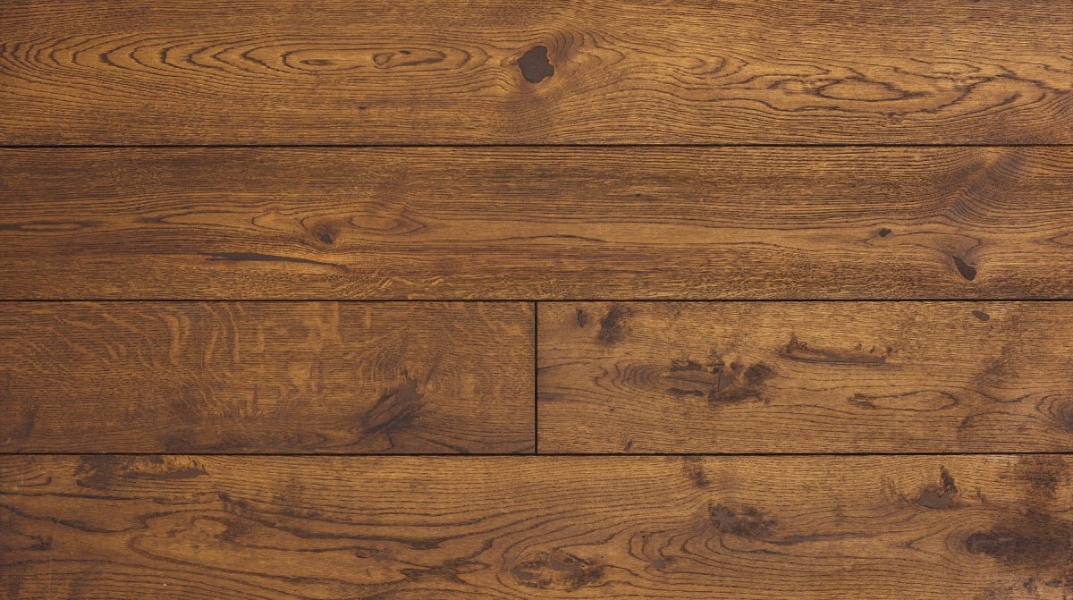 Deski dębowe wybarwione olejowoskami w tonacjach mocno ciemnego brązu. Podłoga będzie pasowała do dużych przeszklonych pomieszczeń urządzonych zarówno w stylu nowoczesnym jak i kolonialnym.