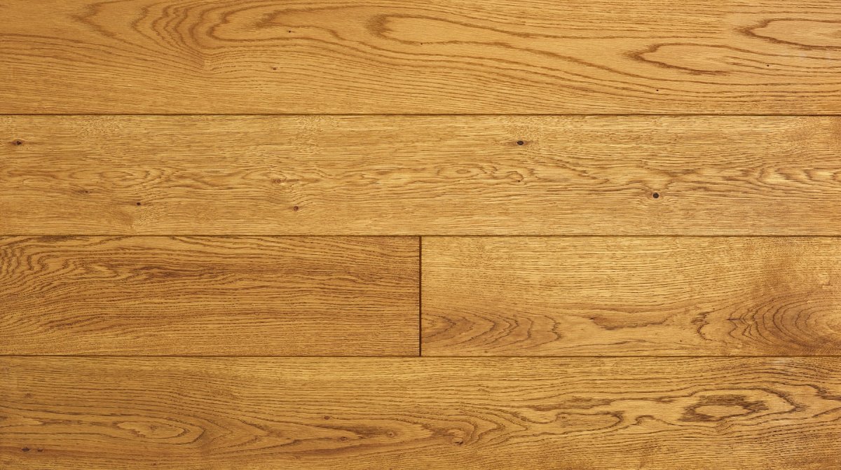 Podłoga dębowa olejowoskowana w skąpana w tonacjach złota i ciepłego brązu w ciepłym delikatnym kolorze antycznego dębu.