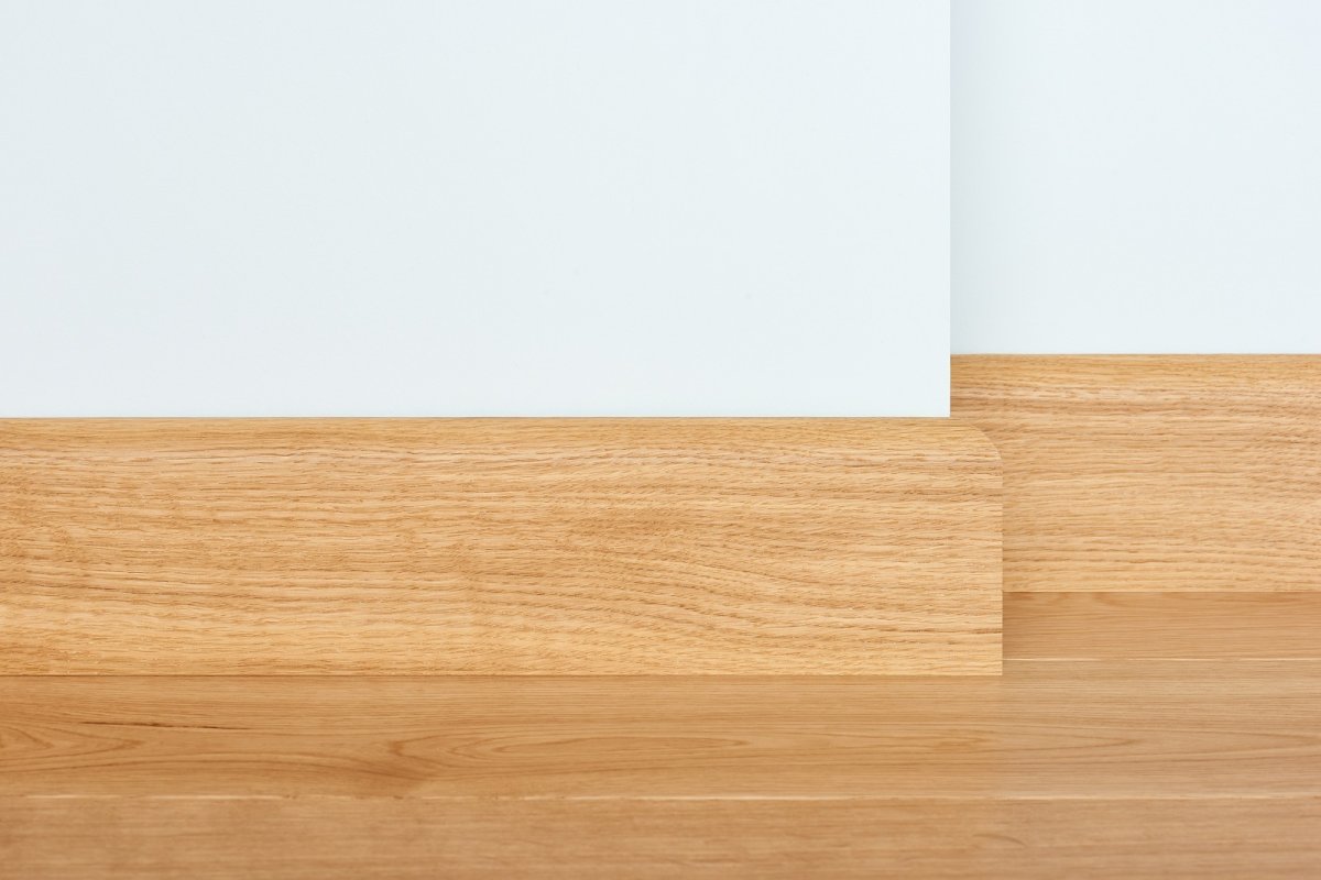 Listwy fornirowane w ciepłym odcieniu dębu to klasyczne rozwiązanie, funkcjonujące we wnętrzach w stylu tradycyjnym. Naturalna struktura drewna tworzy stylową ramę wykańczającą podłogę.